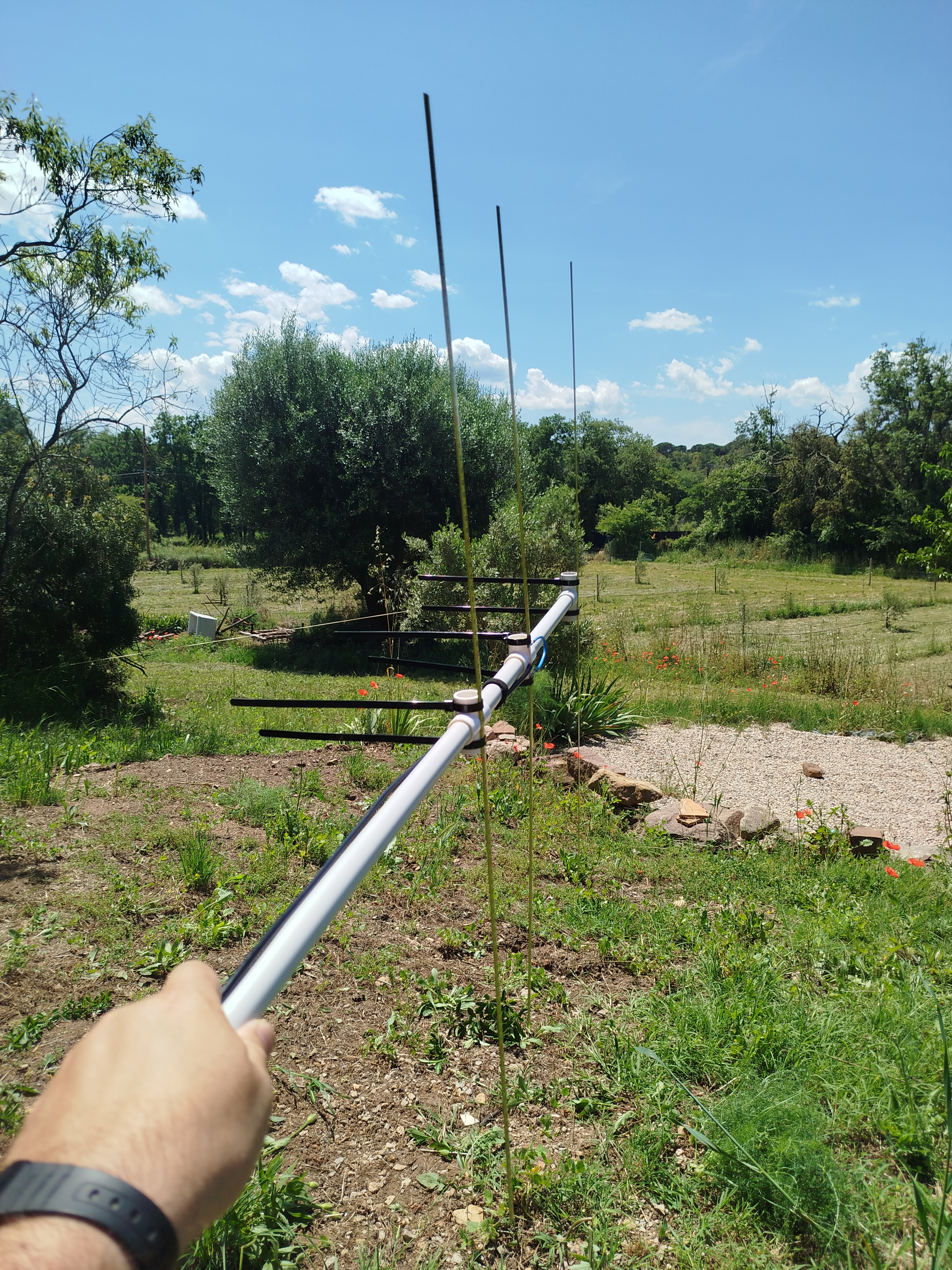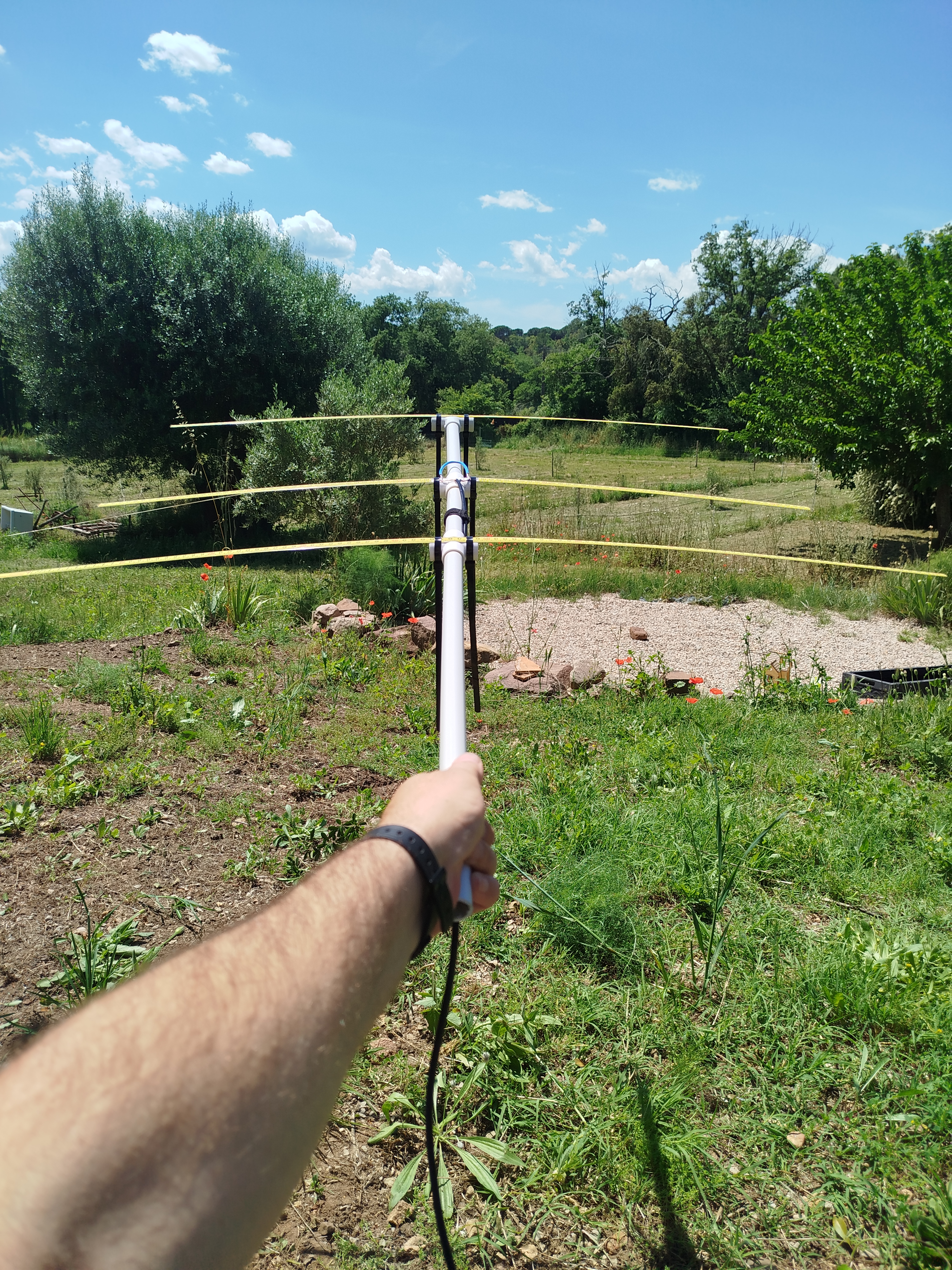 La station n'a jamais eu d'antenne directive, que ce soit en fixe ou en portable ; et j'apprécie l'idée d'une antenne légère pour pouvoir faire des SOTA et d'autres activités de plein air.